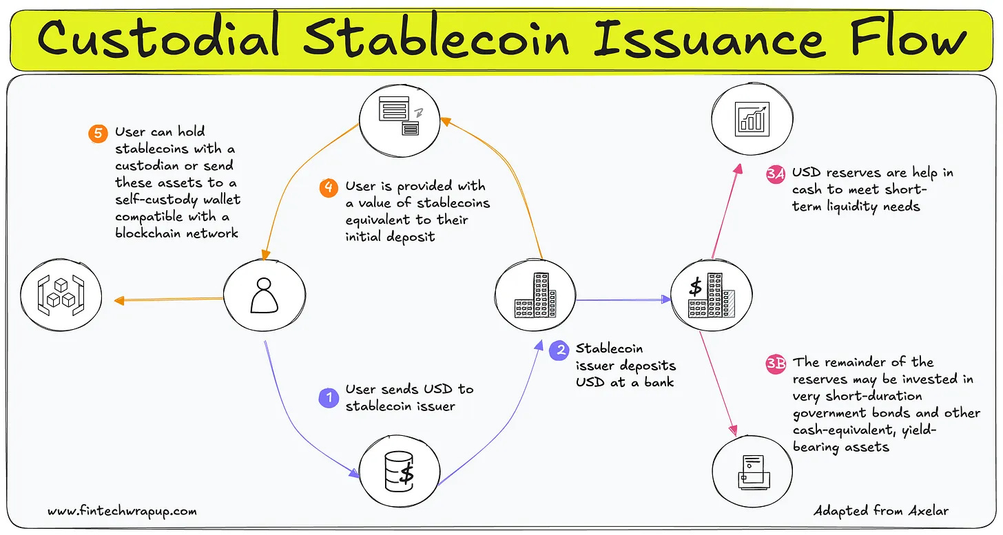 Stablecoins have become one of the most widely used innovations in digital finance, bridging the gap between traditional money and blockchain networks. At their core, custodial stablecoins are digital tokens backed 1:1 by fiat reserves, most often U.S. dollars, held by a regulated issuer. But what does the actual issuance process look like? Let’s break down the flow.