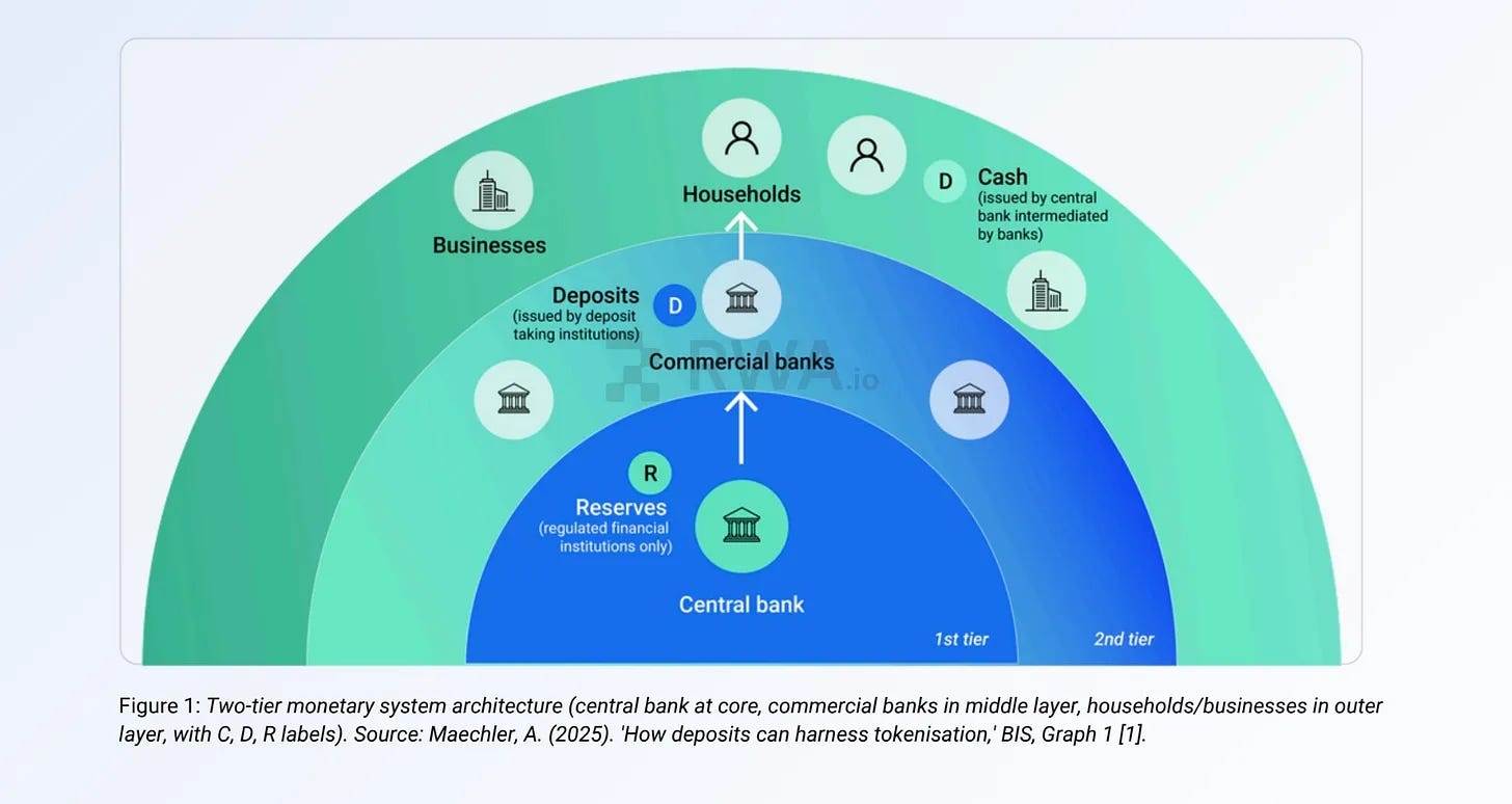 Unlike stablecoins, tokenized deposits are direct liabilities of banks, backed by existing deposits, covered by deposit insurance, and governed by the same regulatory frameworks. They preserve the two-tier monetary system instead of bypassing it.