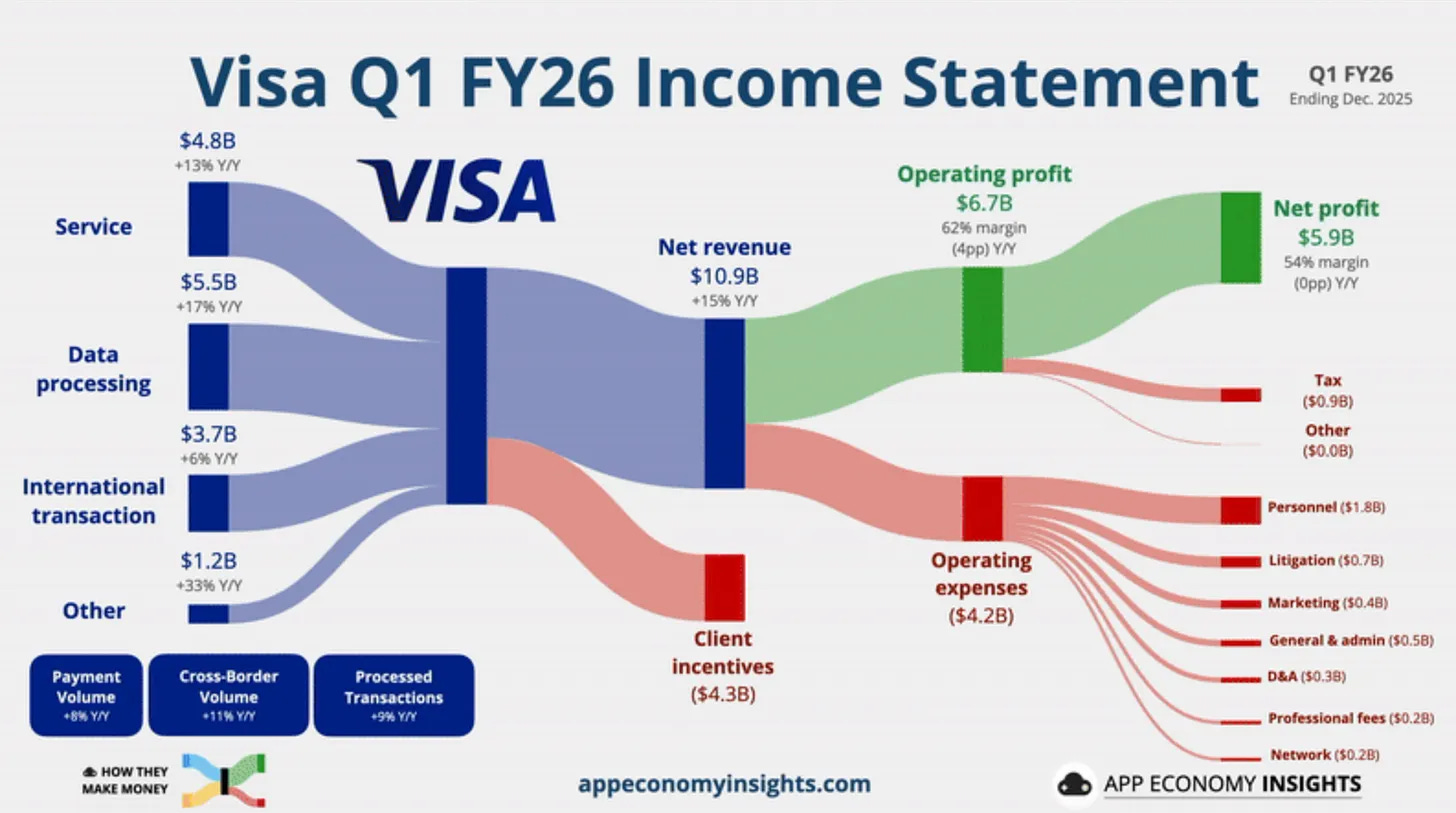 This quarter reinforces a simple point: Visa’s moat is volume, global acceptance, and cross-border flow density.