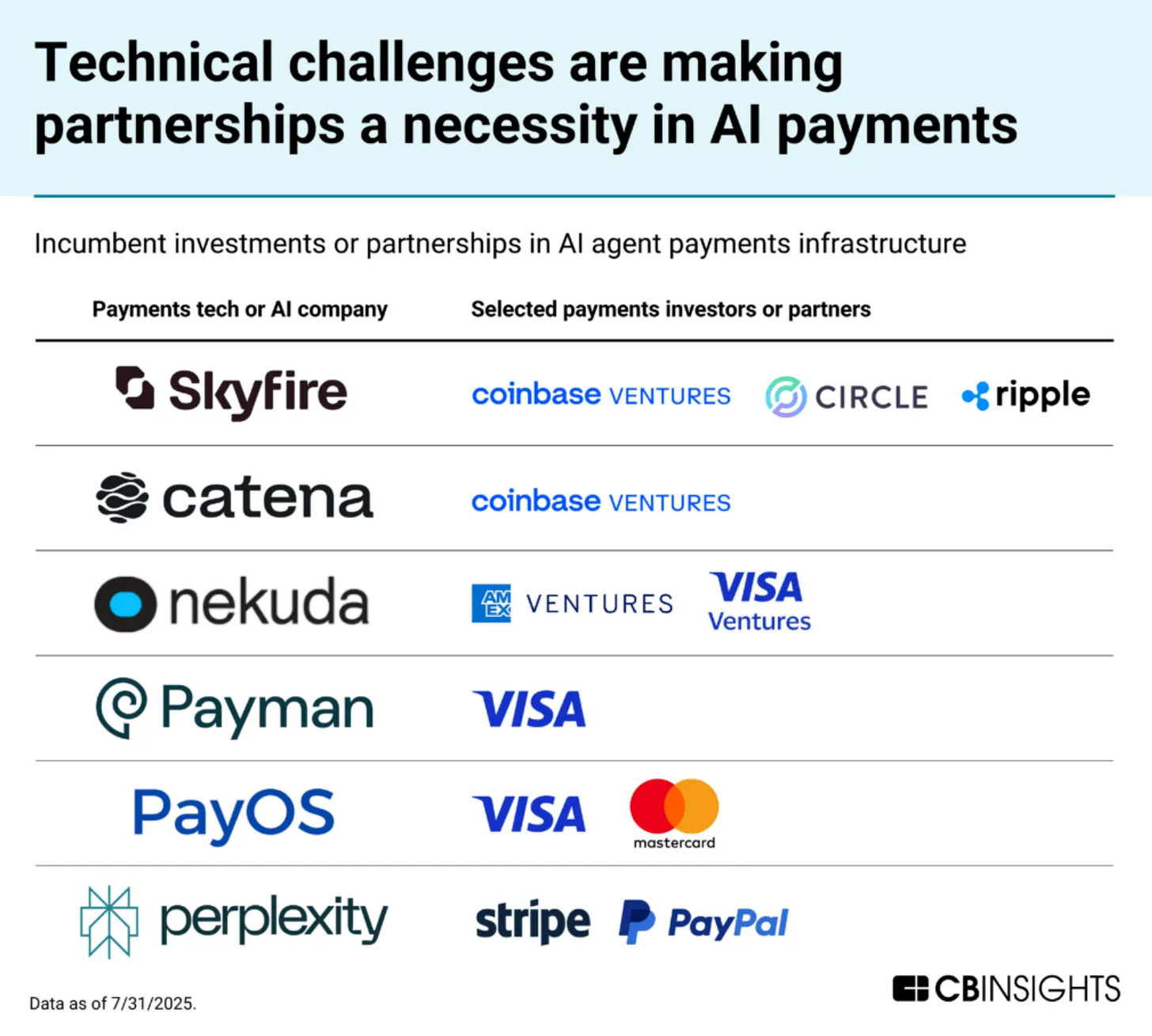 These hurdles have accelerated collaboration between fintech incumbents and startups. Strategic investments and partnerships are laying the foundation for the next phase of agentic commerce.