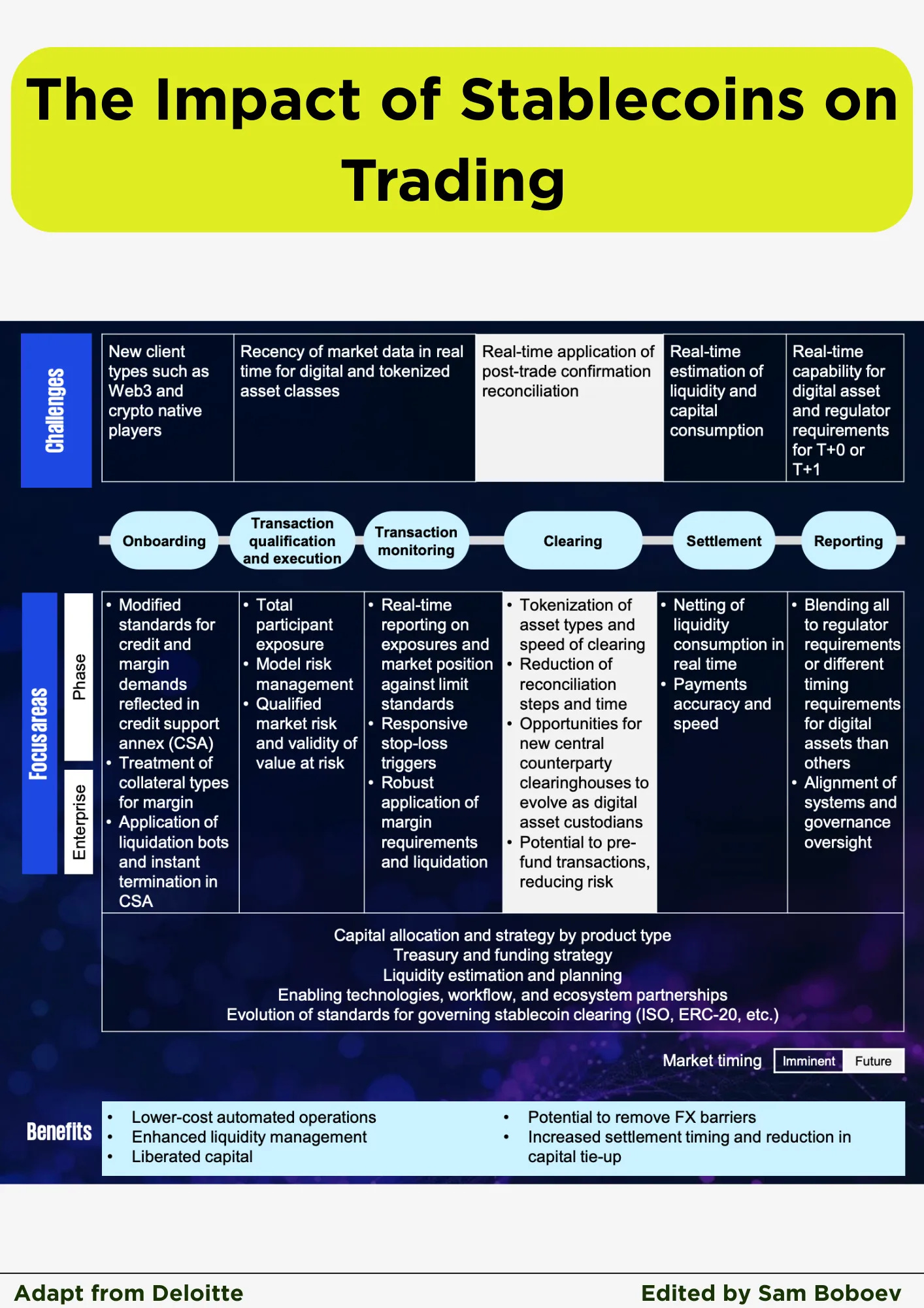 🔹 Settlement - Stablecoins enable real-time netting of liquidity, more accurate payments, and the potential to pre-fund transactions, reducing counterparty risk.