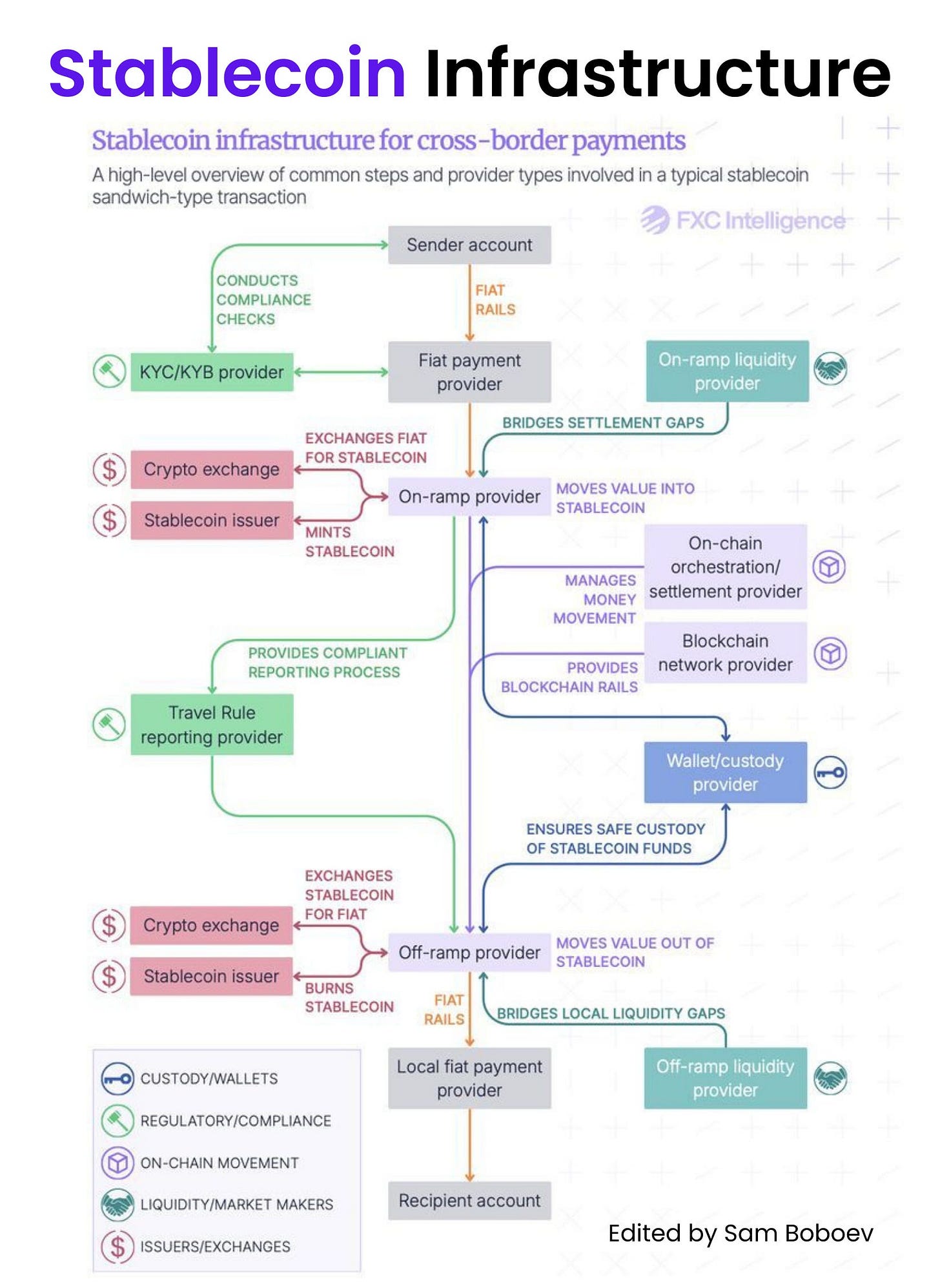 Other elements include the on and off-ramping of funds from fiat to stablecoin and viceversa, the provision of compliance solutions including KYC/KYB and liquidity solutions at both ends of the payment process.