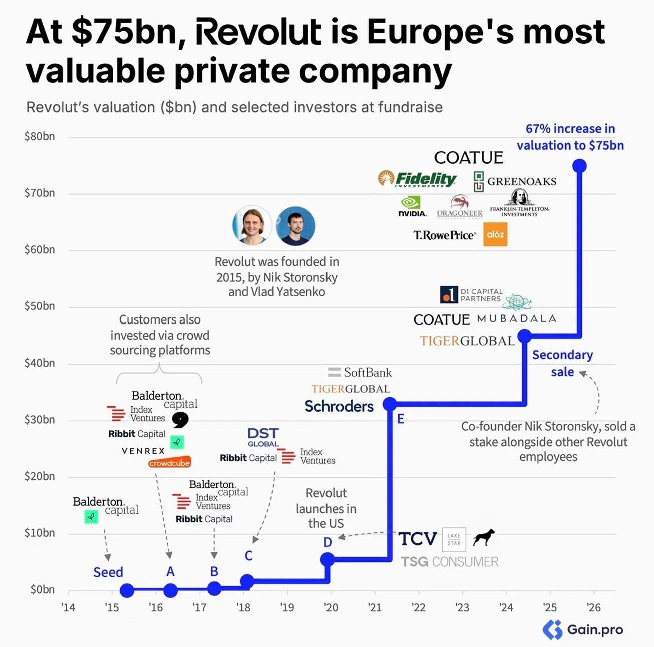 Revolut’s operating model supports this positioning. It is no longer a neobank. It is a multi-product financial infrastructure layer: FX, cards, trading, crypto, insurance, lending. Revenue diversification reduces single-vertical risk and justifies platform multiples rather than bank multiples.
